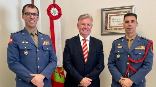 O deputado estadual Nilso Berlanda (PL) recebeu em seu gabinete na Assembleia Legislativa de Santa Catarina, o comandante do 33° Batalhão da Polícia Militar de...