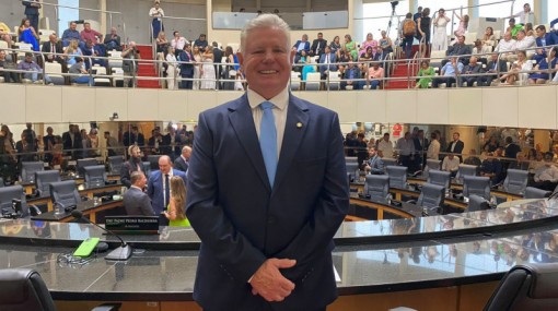 O deputado estadual Nilso Berlanda (PL) na posição de coordenador da Frente Parlamentar de Apoio ao Comércio Varejista na Assembleia Legislativa de Santa Catari...