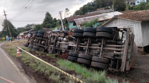 No início da noite deste sábado (24), na SC-350 em Lebon Régis ocorreu uma saída de pista seguida de tombamento de uma carreta com placas de Pinheiro Preto-SC q...