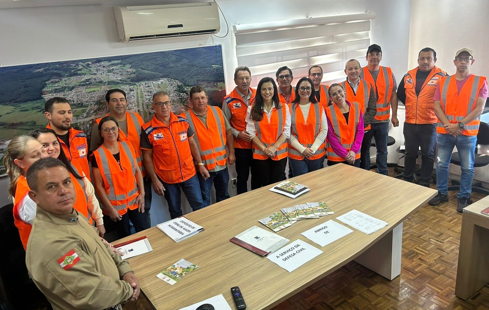 Estiveram participando do 1º Simulado Geral sobre desastres naturais, promovido pela Defesa Civil e realizado simultaneamente em todo o estado, o Prefeito Municipal Jaime Cesca, vice-prefeito Chiquinho, Primeira-Dama Eliziane Cesca, secretários, assessores, diretores e voluntários. Ao término da ação, foi realizada uma reunião em equipe.