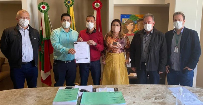Na tarde desta sexta-feira (30), o prefeito recebeu em seu gabinete o superintendente da Regional do Departamento Estadual de Infraestrutura - Santa Catarina (Deinfra), Luiz Felipe Gemelli para o ato oficial da entrega do Projeto para a perimetral-oeste que ligará a SC-120 a BR-470. Também foi solicitada a inclusão do trevo de acesso à localidade do Marombas, construção de calçadas e ciclovia da Rua Florianópolis até a casa da Misericórdia.
