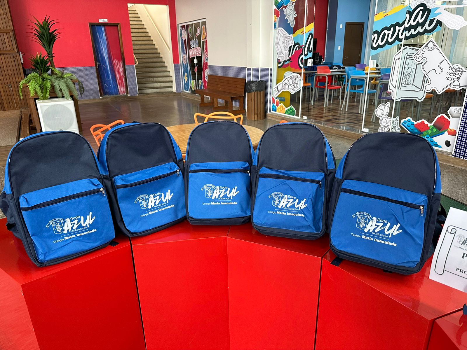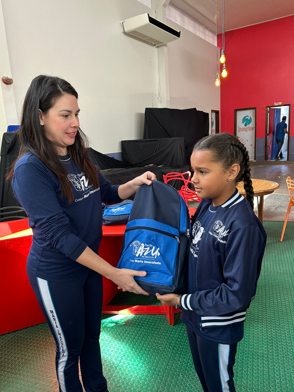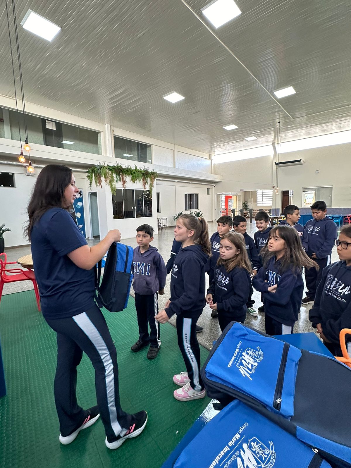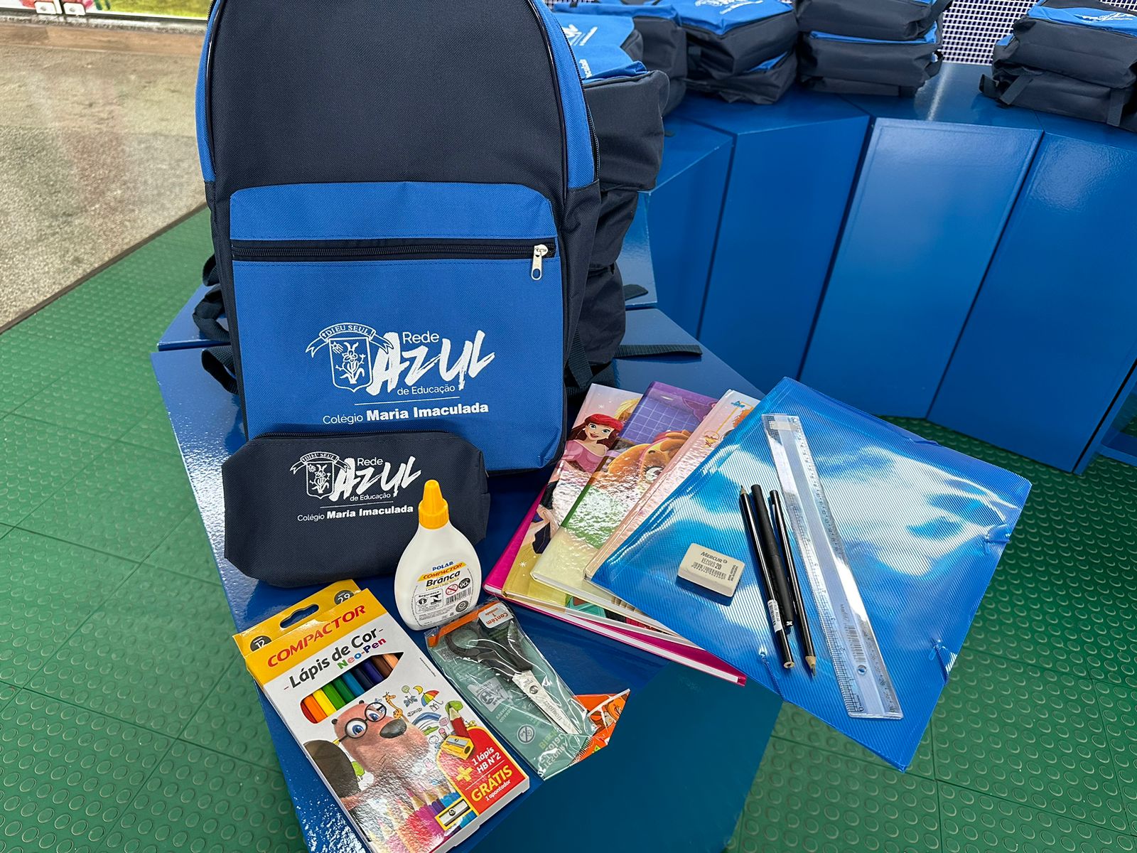 Foram entregues aos alunos, mochila, material escolar e livros didáticos. Foto: Colégio Maria Imaculada.