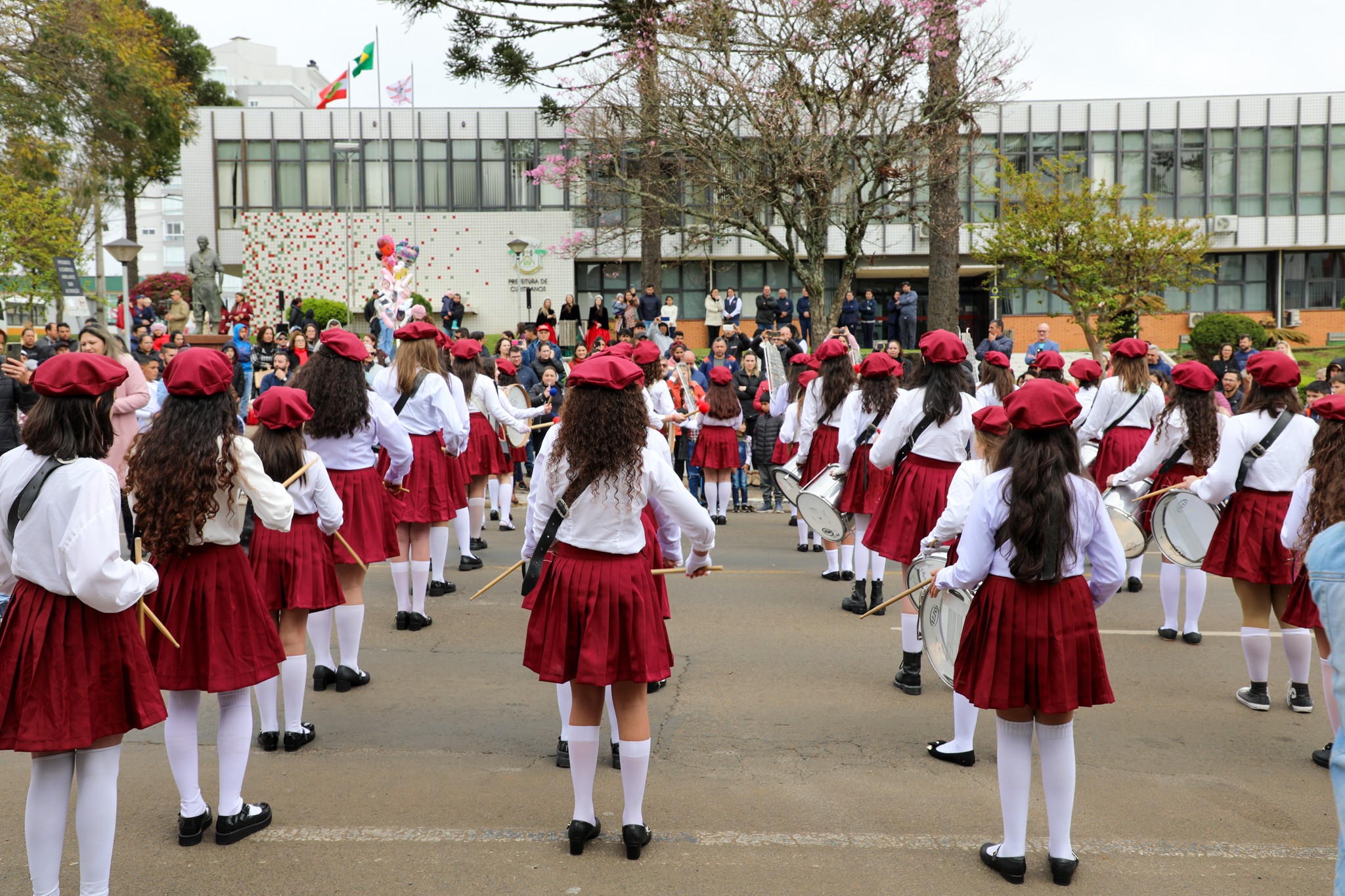 As tradicionais fanfarras também se apresentaram durante o ato cívico nesta manhã, participaram as bandas dos Núcleos Municipais, Leoniza Carvalho Agostini, Teresa Lemos Preto e Getúlio Vargas e também da Escola de Educação Básica Santa Teresinha.