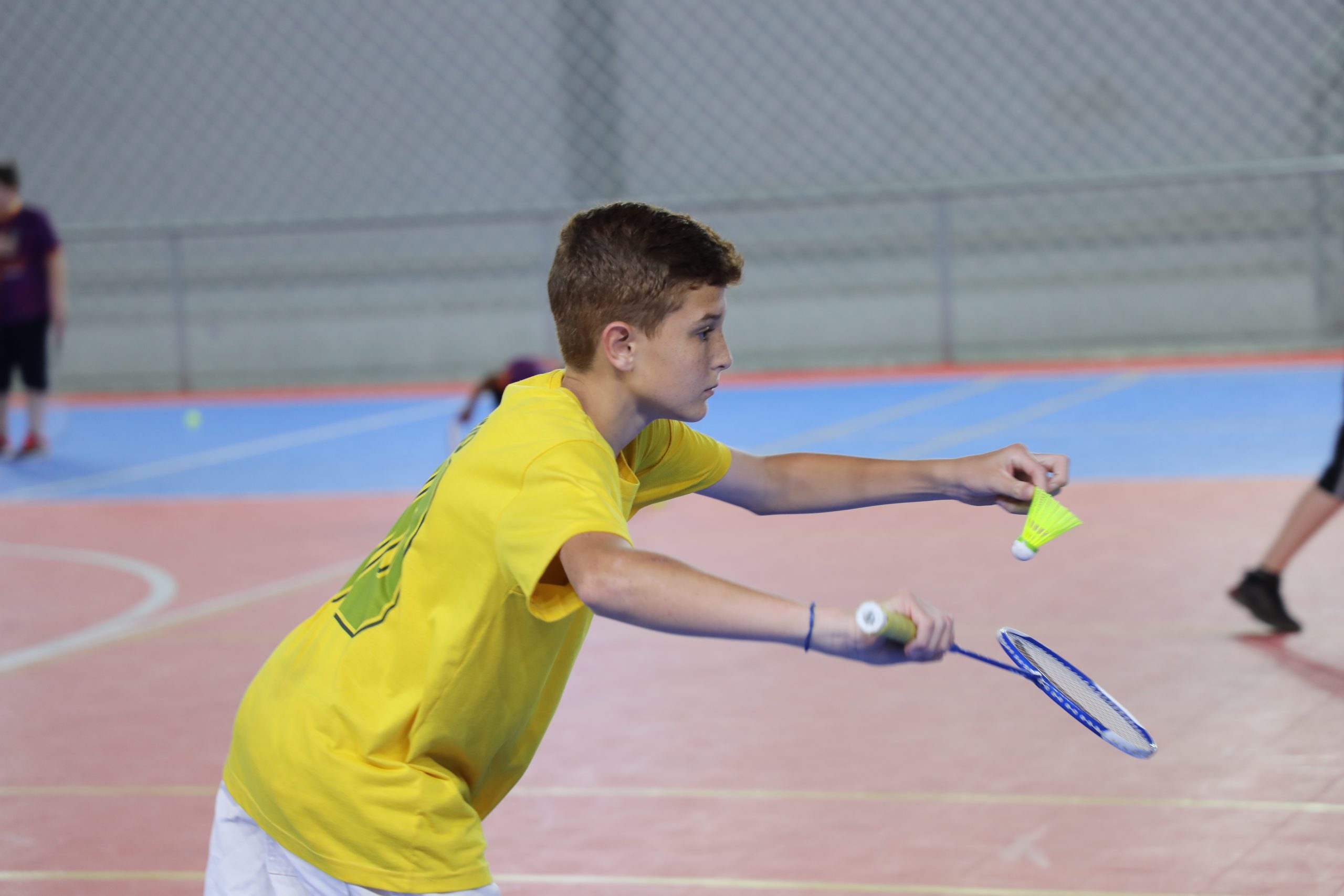 O badminton é um esporte de raquetes que pode ser praticado individualmente ou em duplas. É similar ao tênis, mas, em vez de uma bolinha amarela, o objeto utilizado é uma peteca.