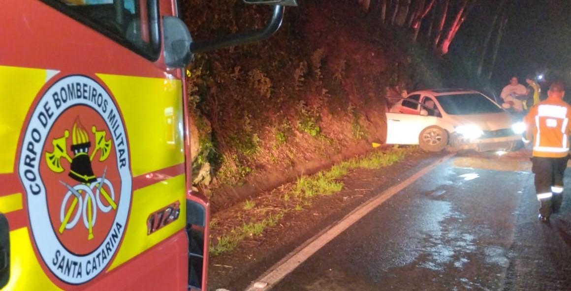O Corpo de Bombeiros atendeu na noite deste sexta-feira (05), ocorreu uma saída de pista de um veículo Civic na SC 464 na linha Valverde no município de Salto Veloso.