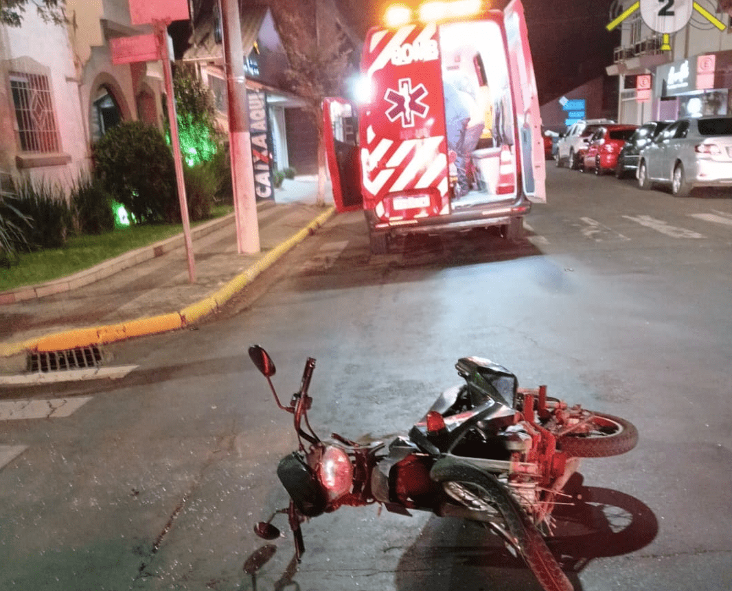 Na noite desta segunda-feira (06) por volta das 19h e 04min, o Corpo de Bombeiros atendeu uma colisão entre uma moto e um veículo no Centro em Curitibanos.