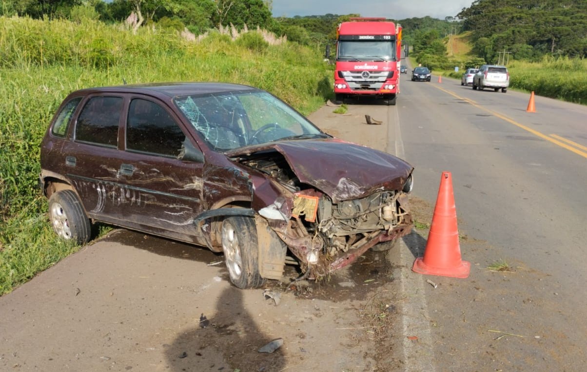 Na BR-470 no KM-245 em Curitibanos ocorreu uma colisão lateral entre um caminhão Iveco Placas Mercosul que estava sendo conduzido por homem de 33 anos que nada sofreu e o veículo Corsa placas Mercosul tinha como motorista um homem de 75 anos, o mesmo apresentava edema na cabeça, sendo na região esquerdo e relatou dores no tórax, sendo atendido e encaminhado ao hospital.