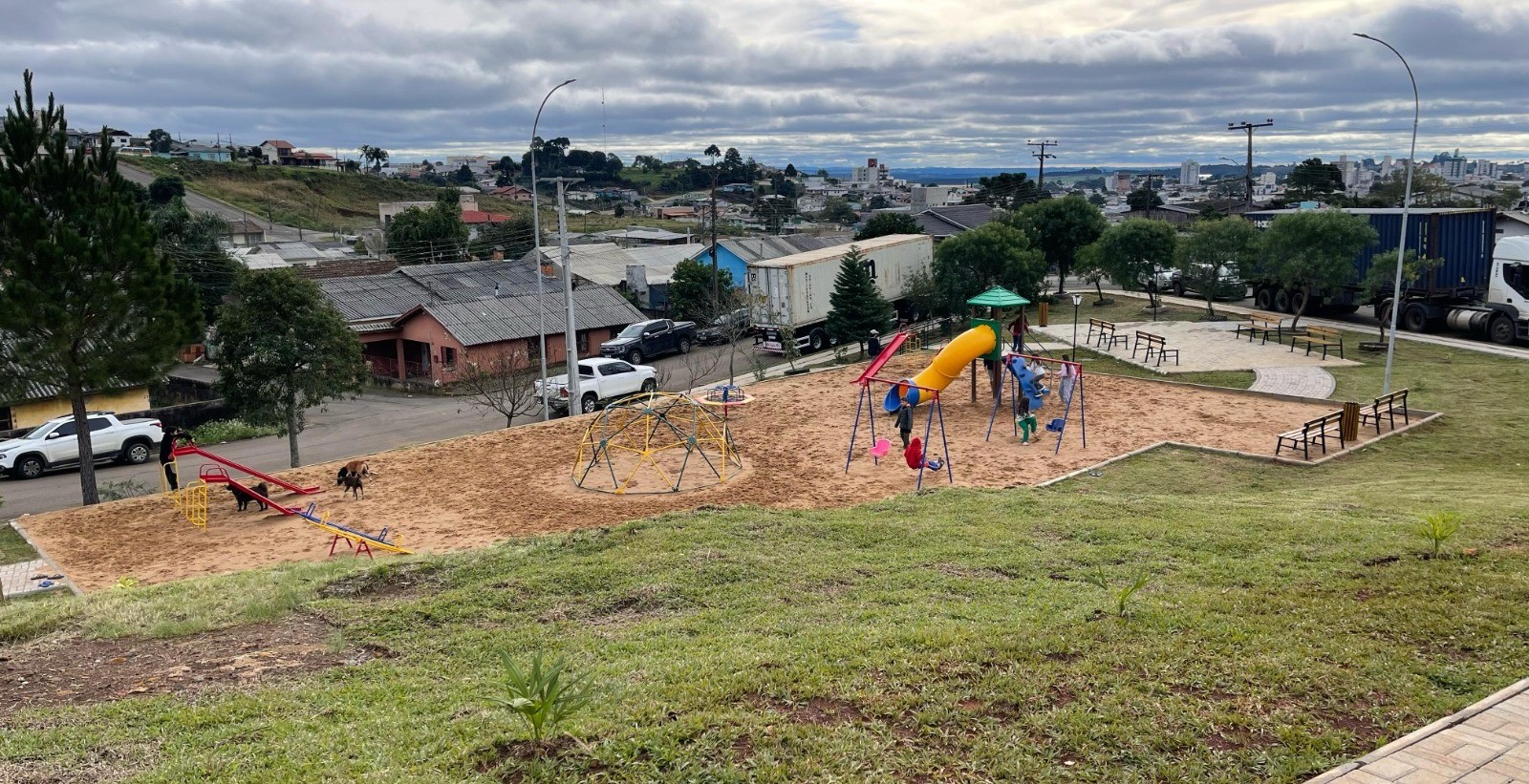 A área de 4.589,53 metros quadrados conta com quadras de areia de futebol e vôlei, e um playground. O valor investido para a criação da praça foi de R$777 mil, sendo cerca de R$400 mil em emenda do deputado Berlanda. O valor inclui ainda a pavimentação, paisagismo e o mobiliário urbano do espaço.