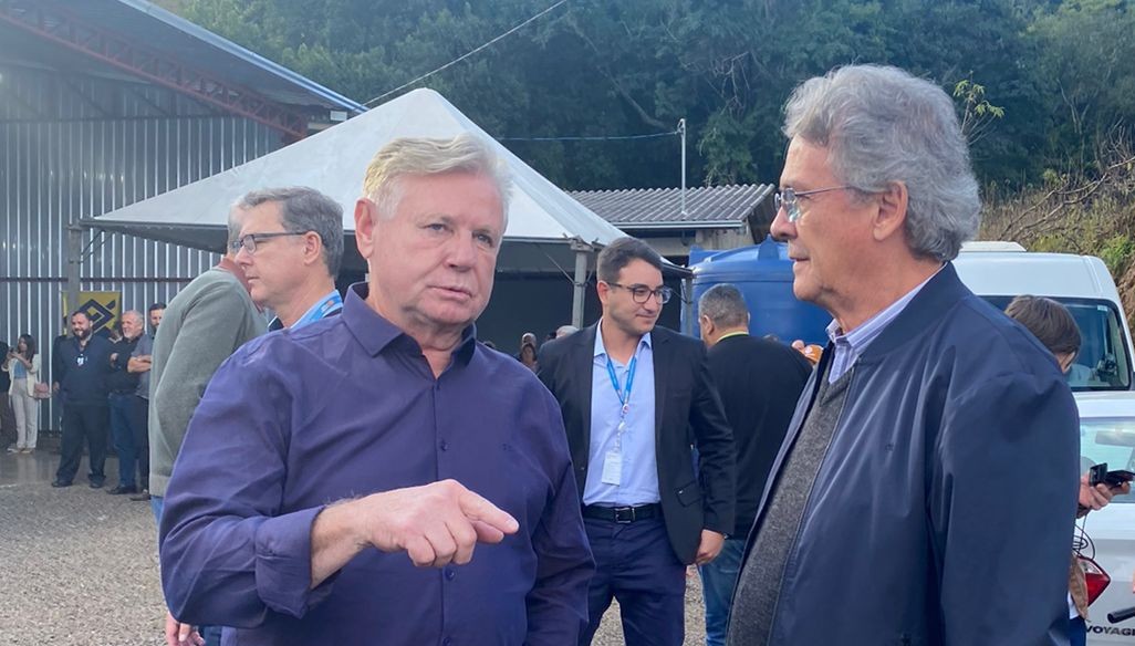 Deputado Berlanda em conversa com o Presidente da Celesc, Tarcísio Rosa, durante ato da Celesc no município de Ibiam. Foto: Divulgação.