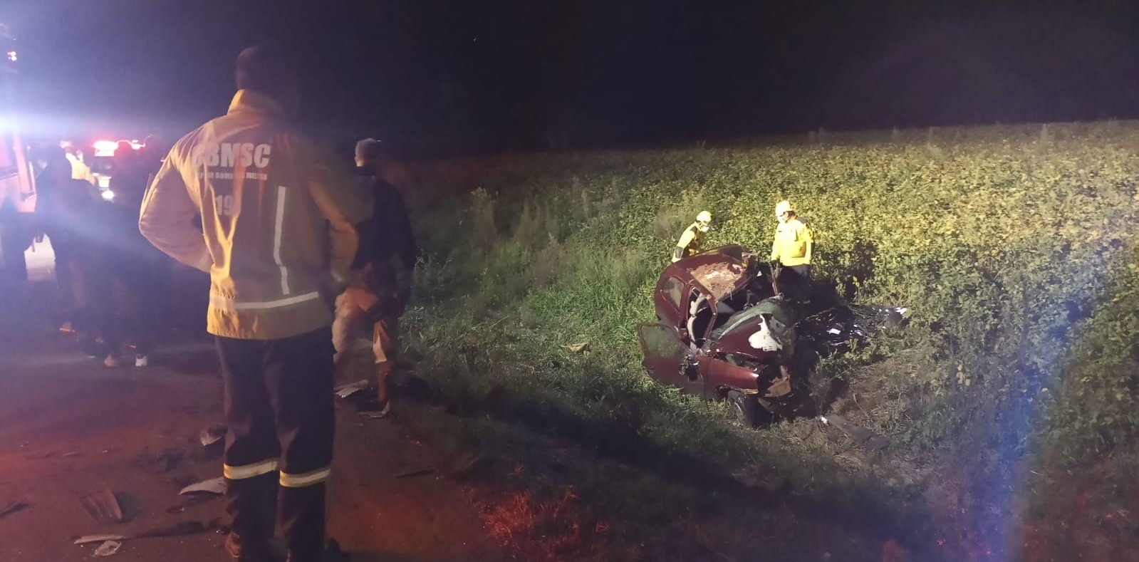 Dois homens não resistiram e vieram a óbito no local e três pessoas ficam feridas. Foto: Corpo de Bombeiros Militar de Campos Novos.