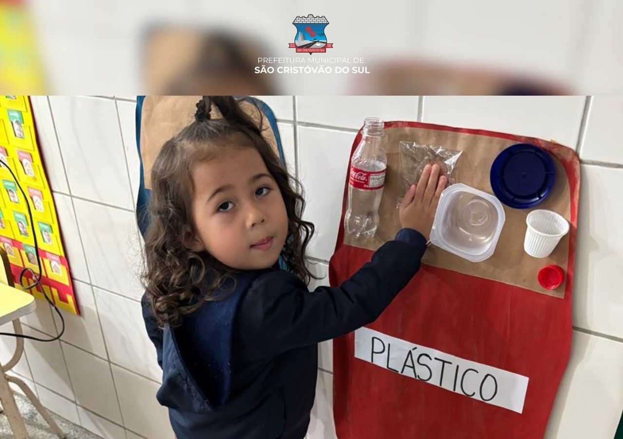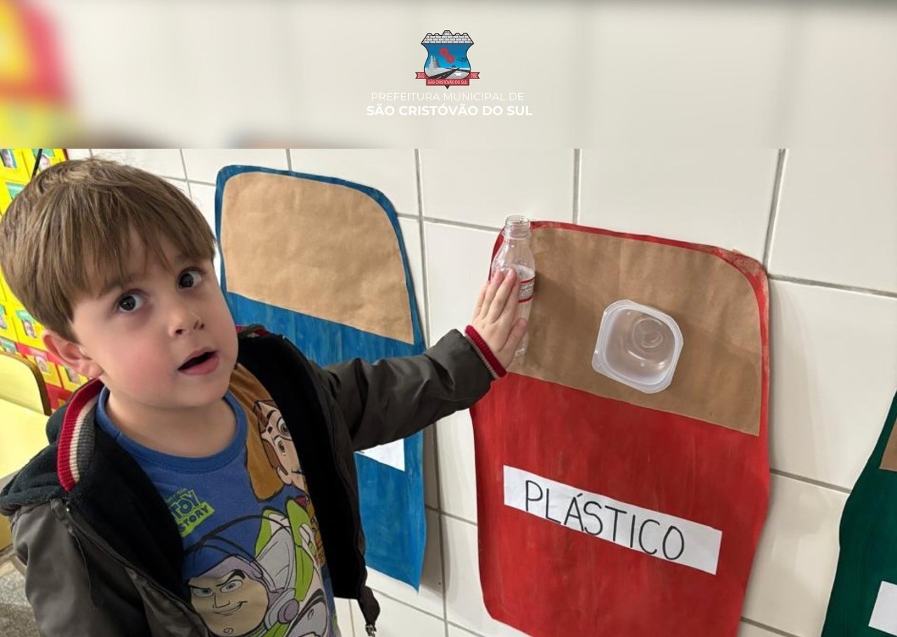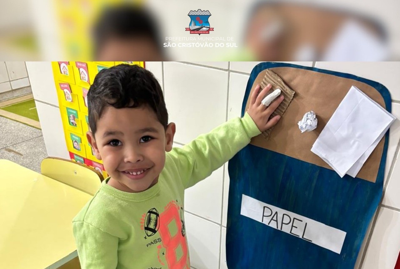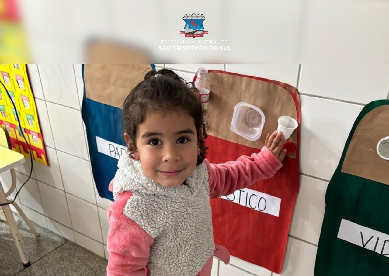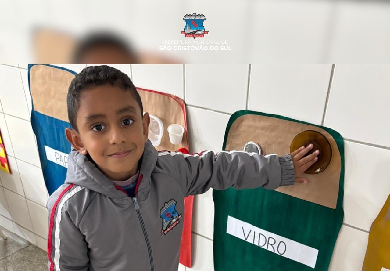 Ao aprender a reciclar, as crianças compreendem a importância de reduzir o lixo, reutilizar materiais e preservar a natureza. Foto: Prefeitura de São Cristóvão do Sul.