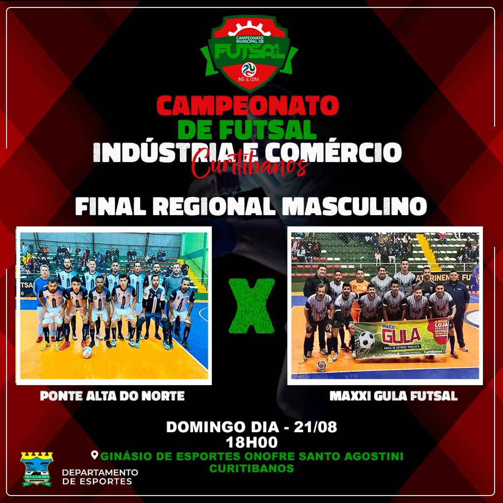 A equipe feminina de Ponte Alta do Norte, enfrentará a equipe da Sthe Modas às 14 horas pela final da categoria feminino e o time masculino entra em quadra às 18 horas, contra a equipe da Maxxi Gula Futsal, pela final da categoria Regional Masculino.