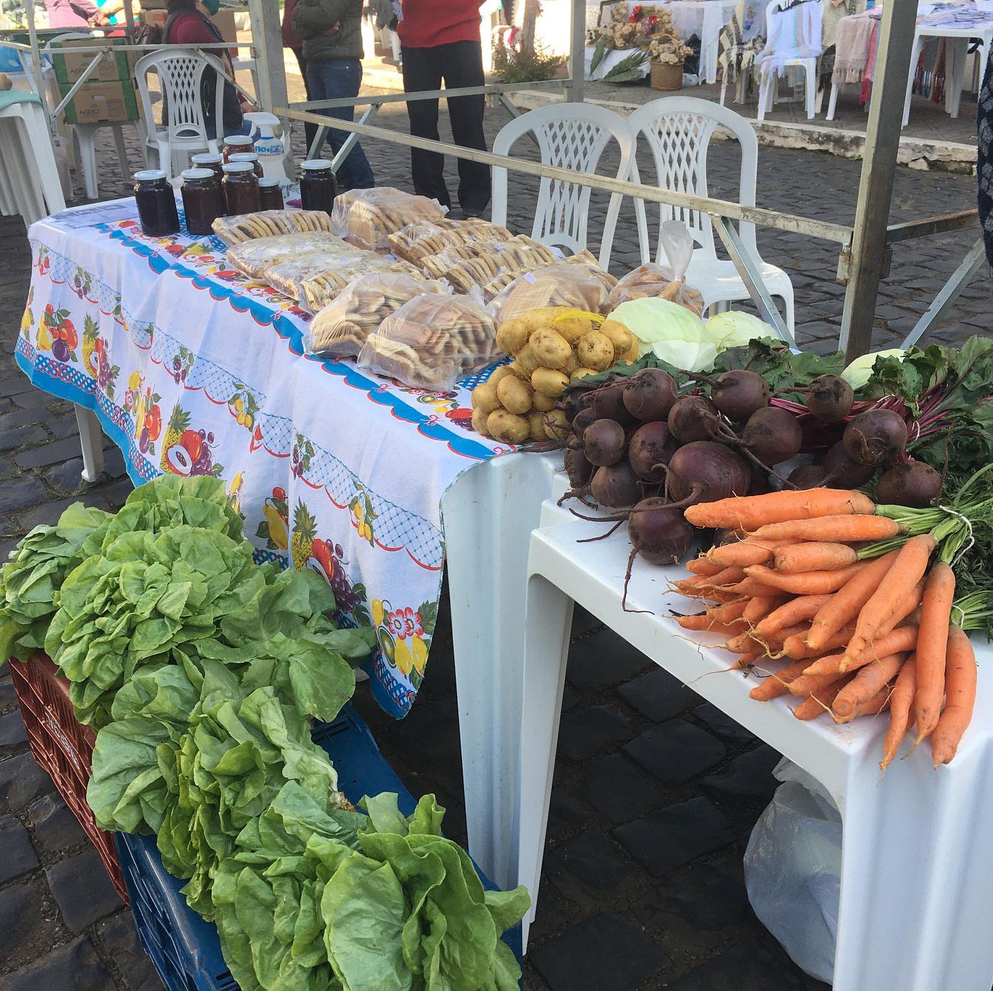 Também é comercializado pães, doces e artesanatos. A feira acontece a partir das 8h30. As pessoas que foram ao local deverão obrigatoriamente usar máscara.