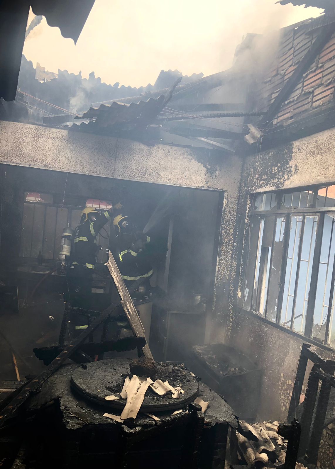 A casa é de alvenaria com aproximadamente 90 metros quadrados, quando os bombeiros chegaram no local, o fogo atingia uma parte do imóvel. Foi utilizado aproximadamente 8 mil litros de água para combater as chamas.
