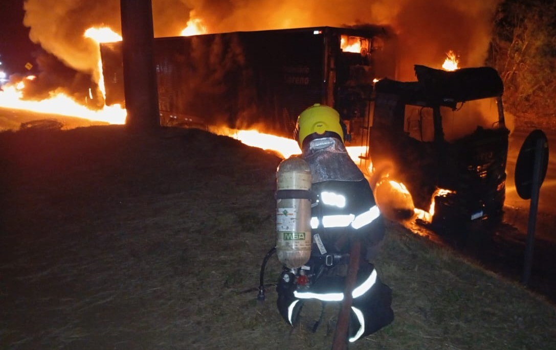 De acordo com os bombeiros, o motorista um homem de 30 anos relatou que avistou pelo retrovisor uma fumaça preta no motor da câmara fria da carreta e encostou no acostamento e tentou fazer o combate com um extintor, mas sem sucesso e logo após o fogo se alastrou.