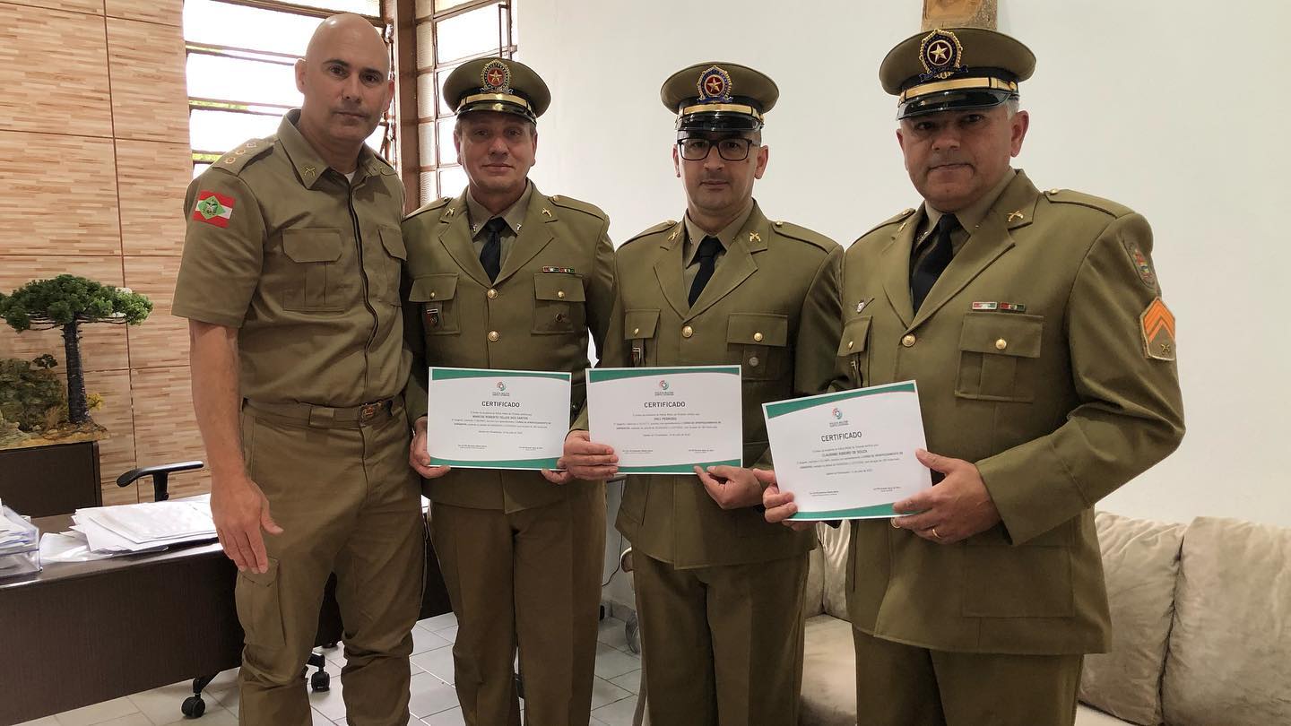 Os formados foram o 2° Sargentos Claudinei Ribeiro de Souza, Marcos Roberto Telles dos Santos e Orli Pedroso. Foto: Polícia Militar de Curitibanos.