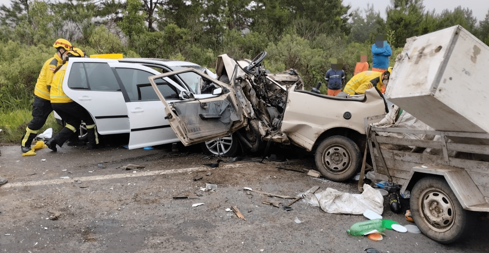 De acordo com as informações repassadas pelos bombeiros, a colisão frontal envolveu dois veículos sendo um Golf com placas Mercosul e um Uno com placas Mercosul que rebocava uma carretinha.