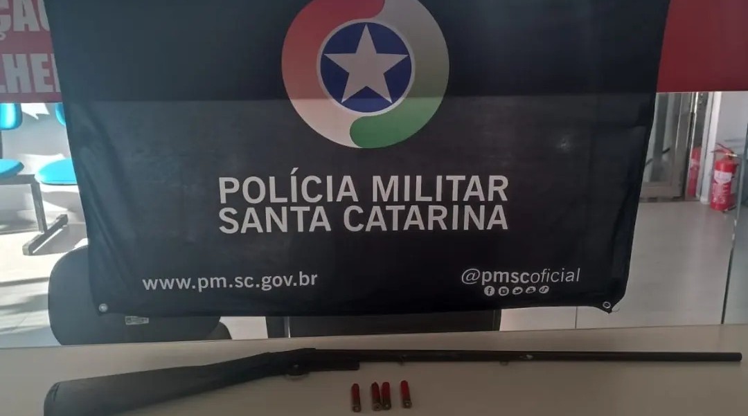 A PM realizou diligências e localizou o suspeito em sua residência e deu voz de prisão e em revista pessoal foram encontrados três cartuchos de espingarda calibre 36, dois deles deflagrados e a arma do crime foi localizada na residência, embaixo de um sofá, com um cartucho pronto para o uso.