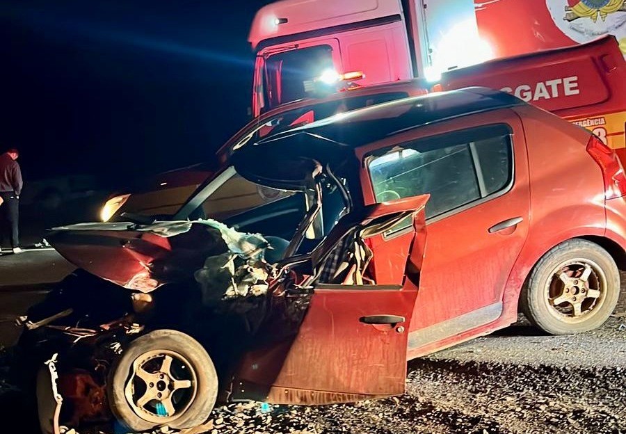 O Corpo de Bombeiros atendeu a uma colisão frontal entre um caminhão e um carro na SC-120 próximo a localidade da Campina do Gélo no interior em Curitibanos.