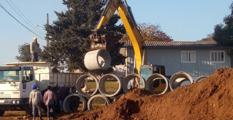 A implantação da rede de esgoto na Rua Pedro Antônio Casagrande esquina com a Rua Nilton Antunes Cevey no bairro Rondinha. Foto: Divulgação.