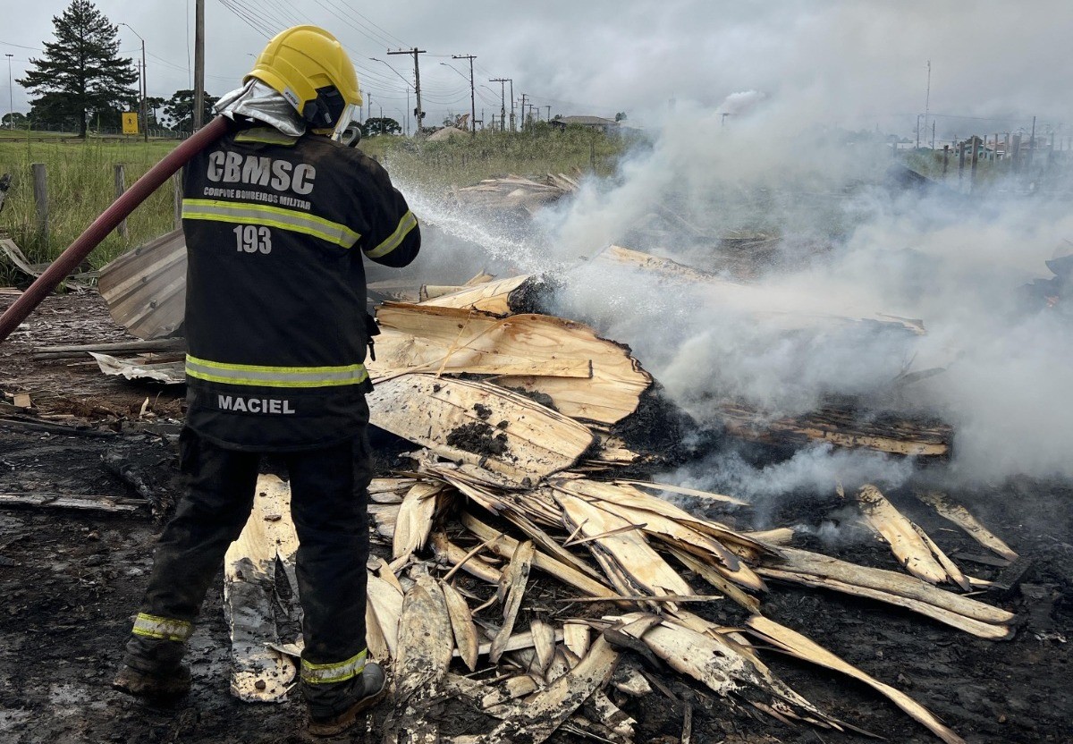 Nesta madrugada de quinta-feira (30), ocorreu um incêndio em um galpão de lâminas de madeira no município de Santa Cecília.