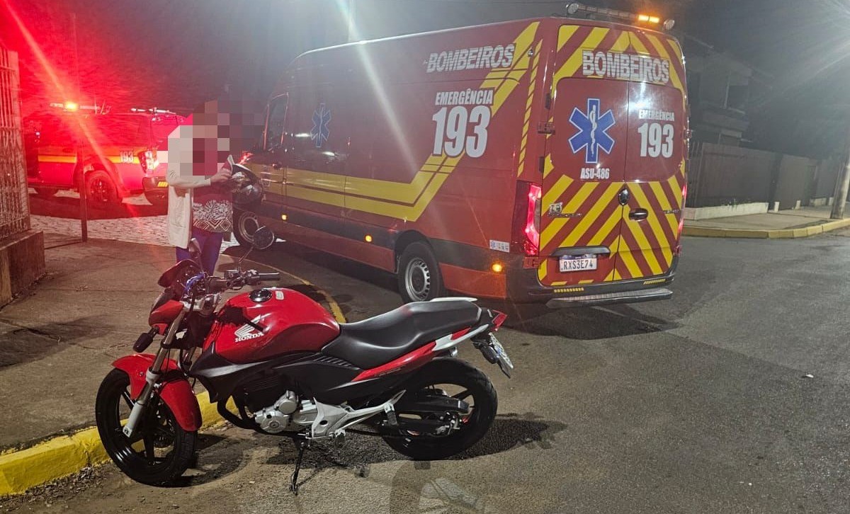 O motociclista foi encaminhado ao Hospital Hélio Anjos Ortiz com suspeita de fraturas. Foto: Corpo de Bombeiros Militar de Curitibanos.