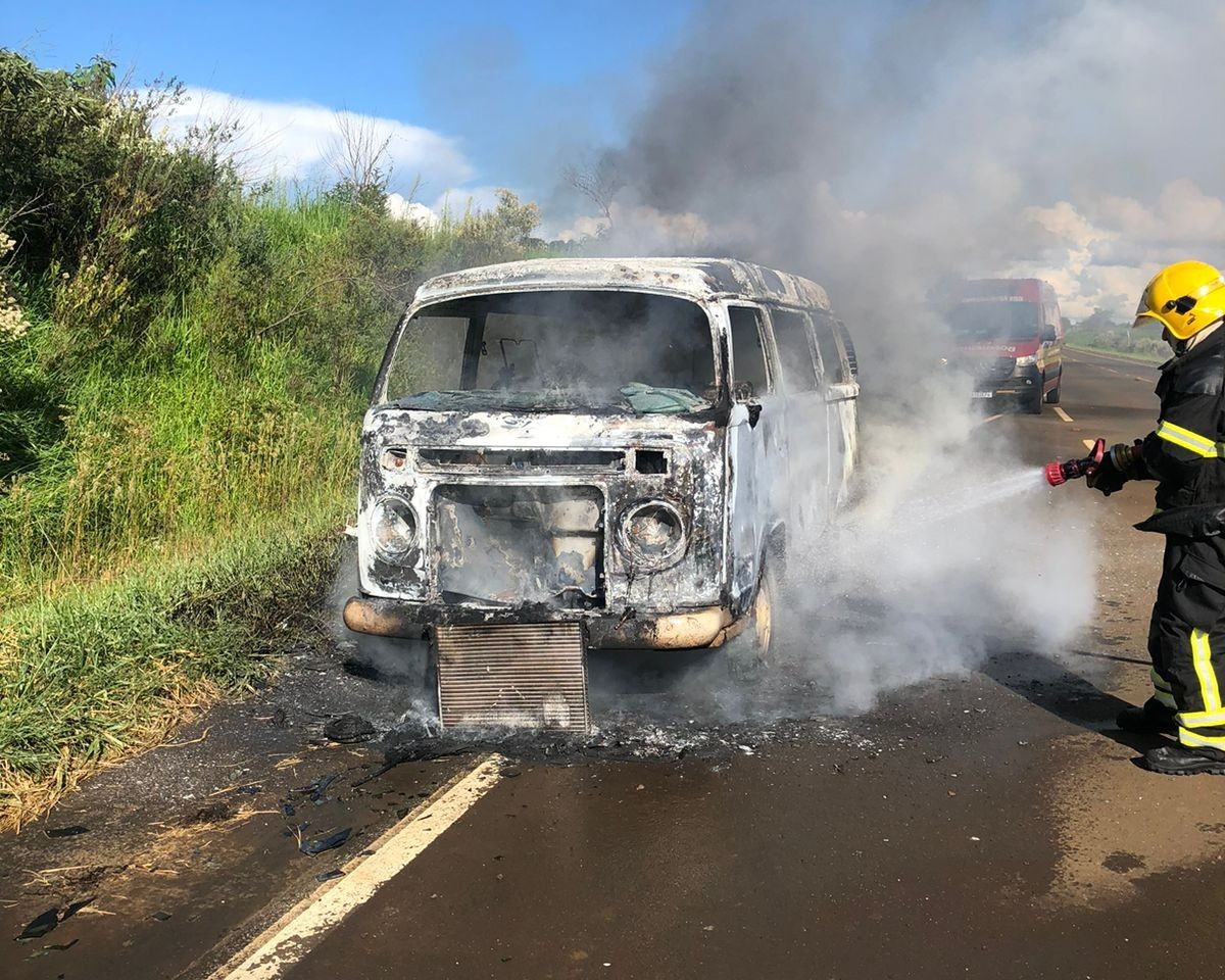 Na tarde desta quarta-feira (28), uma Kombi acabou completamente destruída pelo fogo na SC-451 sentido a Frei Rogério. Apesar dos danos matérias, os bombeiros informaram que não houve vítimas.