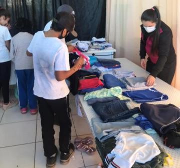 Durante a ação solidária foram distribuídos cobertores, roupas e calçados provenientes de doações da população. Foto: Divulgação.