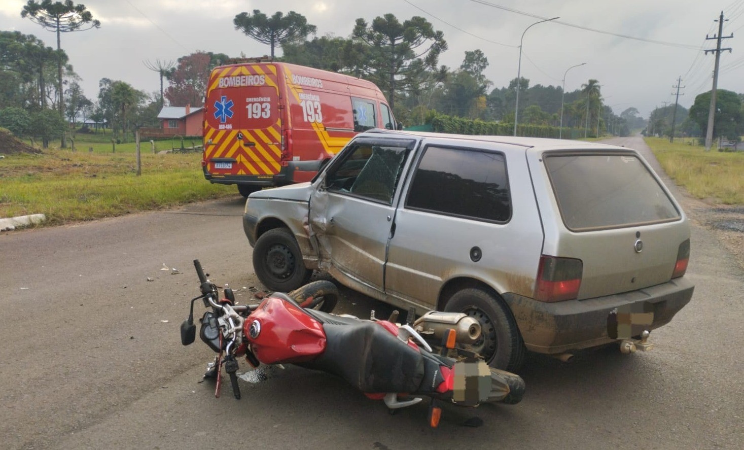 De acordo com os bombeiros, o automóvel Fiat Uno com placas Mercosul tinha como motorista um homem de 20 anos que nada sofreu e a moto Honda com placa de Curitibanos estava sendo conduzida por um homem de 52 anos, o mesmo estava deitado na rodovia, consciente, orientado, apresentava suspeita de lesão na região abdominal e pélvica e escoriações generalizadas nas pernas, sendo de imediato atendido e conduzida ao hospital.