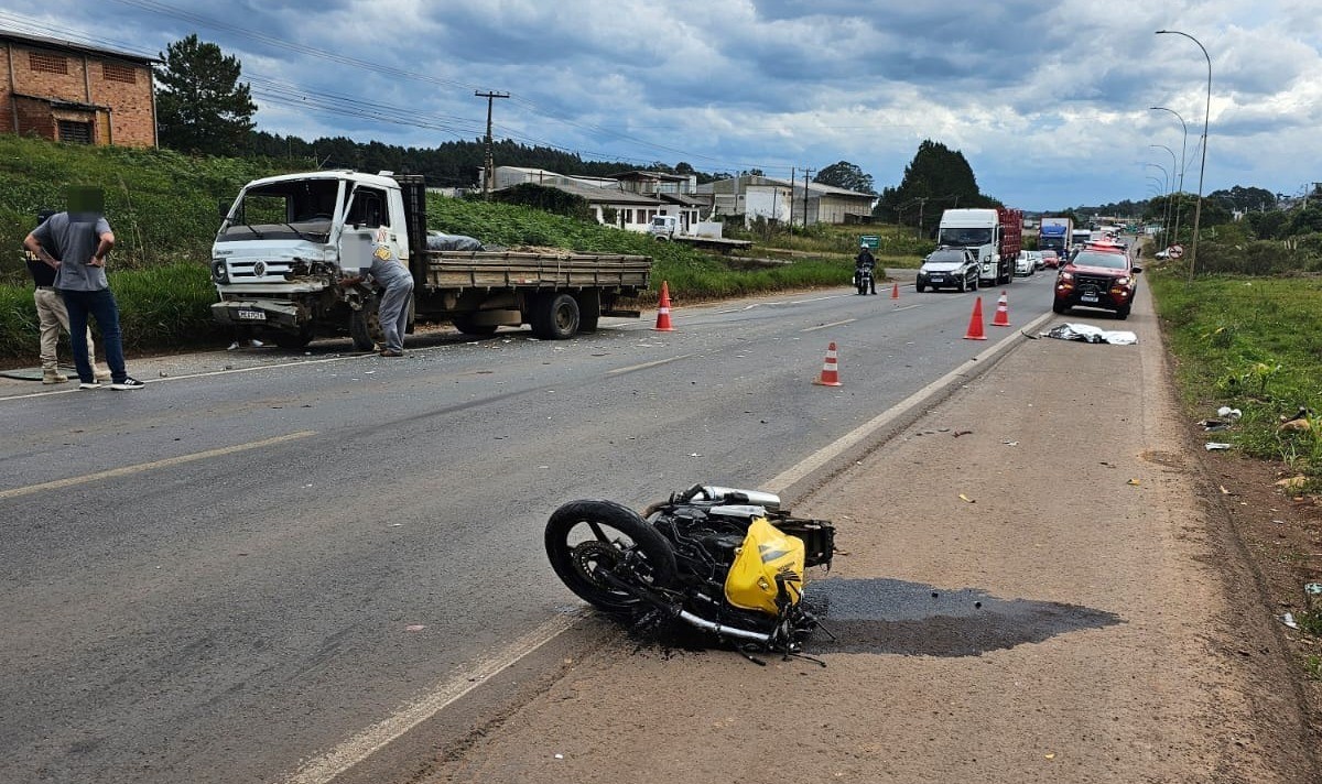 Na tarde desta sexta-feira (09), ocorreu uma colisão frontal entre um veículo e uma moto na BR-470 em Curitibanos, resultando na morte de um motociclista.