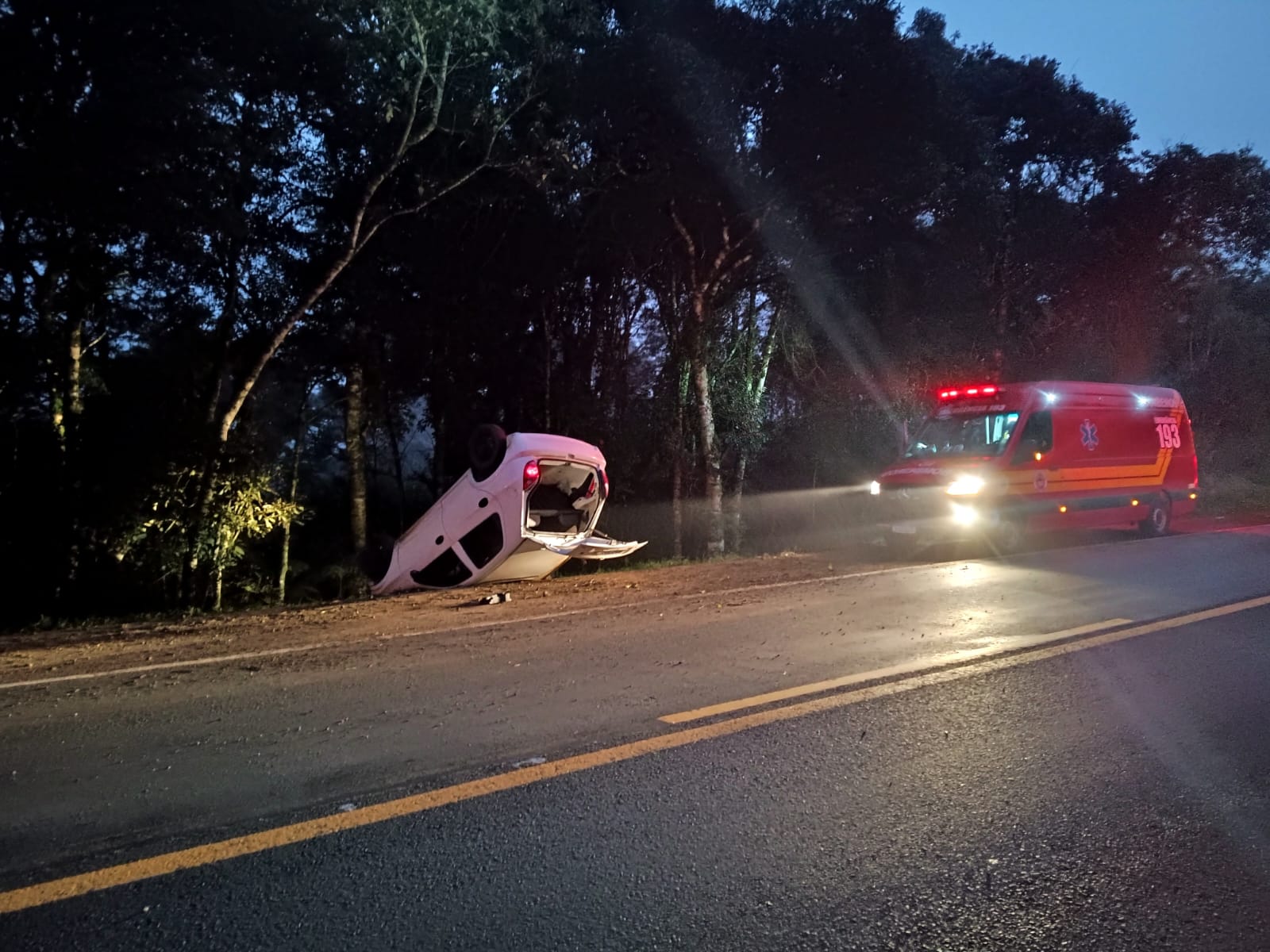 Nesta manhã de quarta-feira (29) por volta das 06 horas, ocorreu uma saída de pista seguida de capotamento de um veículo Celta com placas Mercosul na BR-470 em São Cristóvão do Sul.