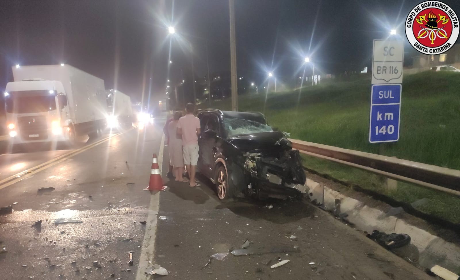 Na noite deste sábado (08), aconteceu uma colisão entre um caminhão e um veículo na BR-116 no município de Santa Cecília, deixando uma pessoa gravemente ferida.