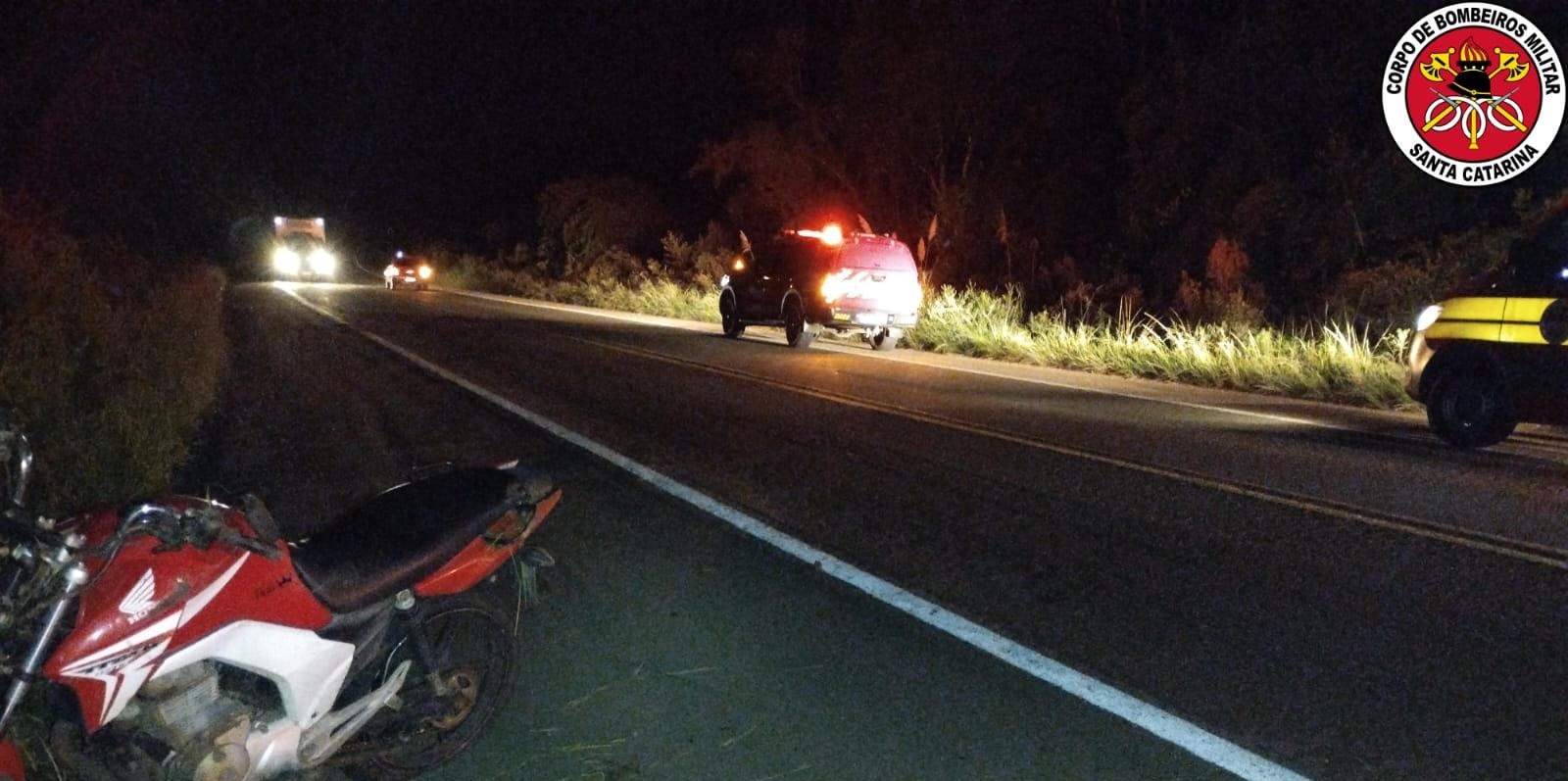 Conforme os registros dos bombeiros, no local foi constatado uma saída de pista da moto Honda com placas Mercosul que estava sendo conduzida por um homem de 32 anos, o mesmo apresentava luxação no ombro esquerdo e escoriações generalizadas, sendo de imediato atendido e encaminhado ao hospital e tinha como caroneira uma mulher de 24 anos. A vítima foi encontrada com lesões na cabeça, na face e intensa hemorragia, vindo a óbito no local.