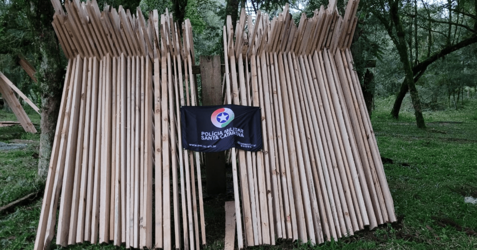 Conforme a PMA, durante patrulhamento de rotina policiais militares ambientais localizaram em uma propriedade rural, a ação ilegal de árvores da espécie Pinheiro Brasileiro (Araucaria angustifolia), ameaçada de extinção. No local, também foi constatado o beneficiamento da madeira extraída.