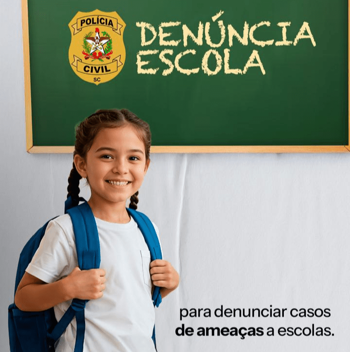Conforme divulgado pela Polícia Civil de Santa Catarina, o canal Denúncia na Escola está disponível para relatar qualquer suspeita, ameaça ou comportamento preocupante relacionado ao ambiente escolar e a identidade do denunciante será preservada, proporcionando mais segurança e confiança para quem deseja colaborar.