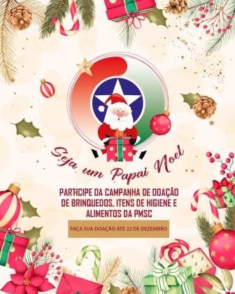 A Polícia Militar de Santa Catarina está realizando a campanha Seja um Papai Noel, doando brinquedos novos ou usados em bom estado e higienizados, bem como alimentos não perecíveis e materiais de higiene.