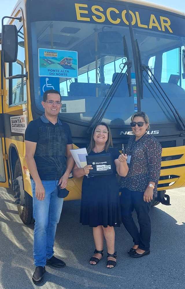 Participaram da entrega a Secretária de Educação de Ponte Alta do Norte, Elaine Nassif e os motoristas Luciano e Sônia.