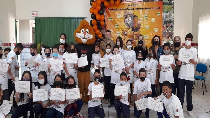 De acordo com a PM, foram formados 190 alunos de sete turmas das escolas, Centro de Educação Santa Teresinha, Escola de Educação Básica Santa Teresinha, Escola de Educação Básica Deputado Altir Webber de Mello e Escola de Educação Básica Marechal Eurico Gaspar Dutra.