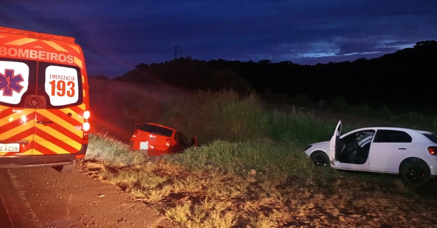 Na noite deste domingo (17), o Corpo de Bombeiros atendeu a uma colisão entre dois veículos na BR-282 em Campos Novos.