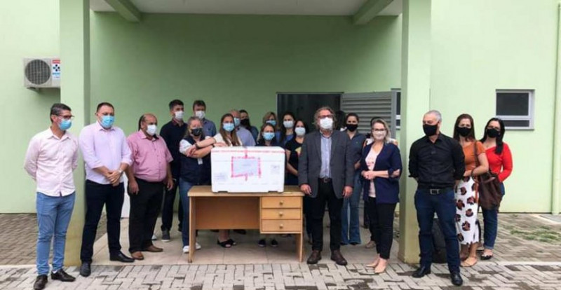 Na reunião regional que aconteceu na cidade Videira foram distribuídas as doses. São Cristóvão do Sul recebeu 34 unidades. Conforme o plano de vacinação, as primeiras doses seriam para grupos prioritários, mas houve alteração e serão destinadas para profissionais da saúde, que atuam na linha de frente de combate a Covid-19.