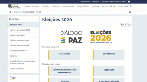 O Tribunal Regional Eleitoral de Santa Catarina (TRE-SC) lançou o portal Eleições 2026 nesta quarta-feira (25), a partir de formalização do presidente do Regi...