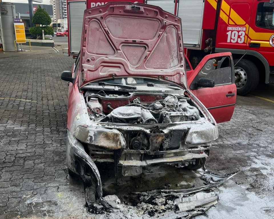 Um homem de 54 anos que conduzia um Gol, passou por um sufoco na tarde desta quarta-feira (06) quando o motor do carro começou a pegar fogo. O carro estava em frente a um posto de combustíveis na Avenida Rotary em Curitibanos.