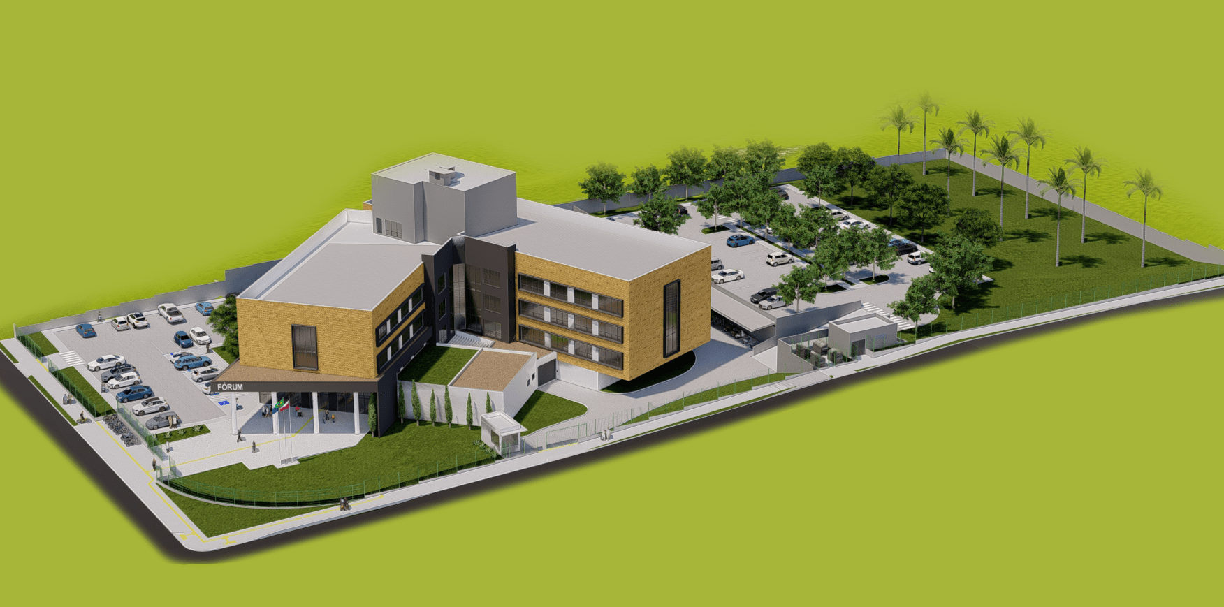 Projetado para abrigar sete varas judiciais, o novo fórum de Curitibanos contará com espaços exclusivos para o Ministério Público, OAB/SC e Defensoria Pública, além de setores de segurança, cartórios, salas de audiência, Salão do Júri, Cejusc, áreas psicossociais e ambientes destinados à Justiça Restaurativa, mediação e conciliação.