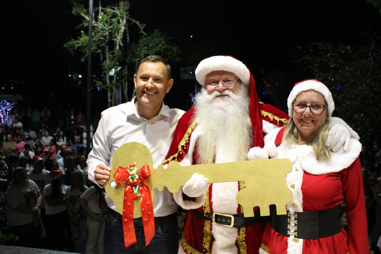Na concha acústica o Papai Noel, recebeu das mãos do prefeito, Kleberson Lima, a chave da cidade, abrindo assim, oficialmente as comemorações natalinas de Curitibanos.