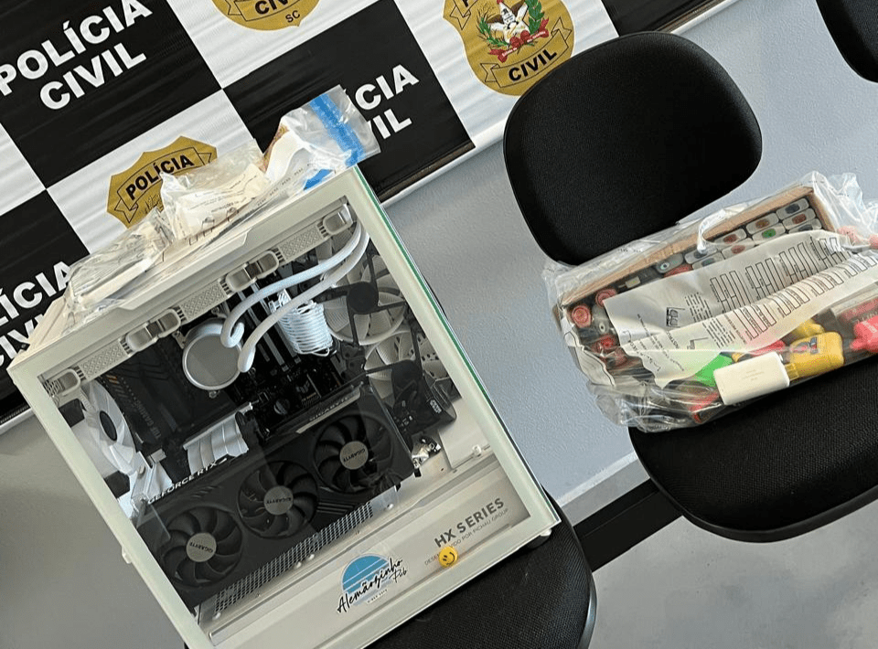 Durante o cumprimento da ordem judicial, os policiais apreenderam diversos equipamentos eletrônicos, incluindo pen drives, cartões de memória, um computador, um notebook (MacBook), um celular (iPhone) e, curiosamente, até 71 cigarros eletrônicos. Todo esse material será encaminhado à Polícia Científica para passar por uma análise técnica, e depois será examinado pela equipe de investigação da DPCAMI.